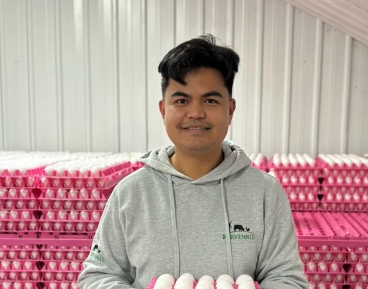 His deep knowledge of egg production and calm, experienced approach help keep the hens happy and healthy.
